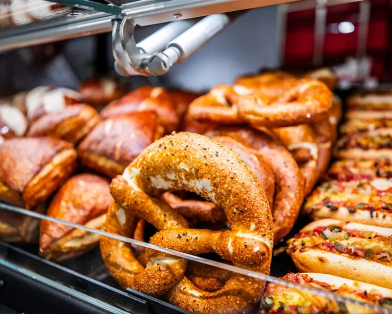 Der Duft von frischem Gebäck erwartet dich an unserer Bake-Off-Station. Ob knusprige Brötchen, Croissants oder herzhafte Snacks – hier findest du rund um die Uhr frisch aufgebackene Leckereien für den kleinen oder auch großen Hunger zwischendurch.